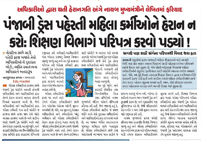 MAHILA KARMCHARI NE PUNJABI DRESS PAHERVA NI CHHUT AAPVA BABAT PARIPATRA ANE RELATED NEWS REPORT PAR EK NAJAR.